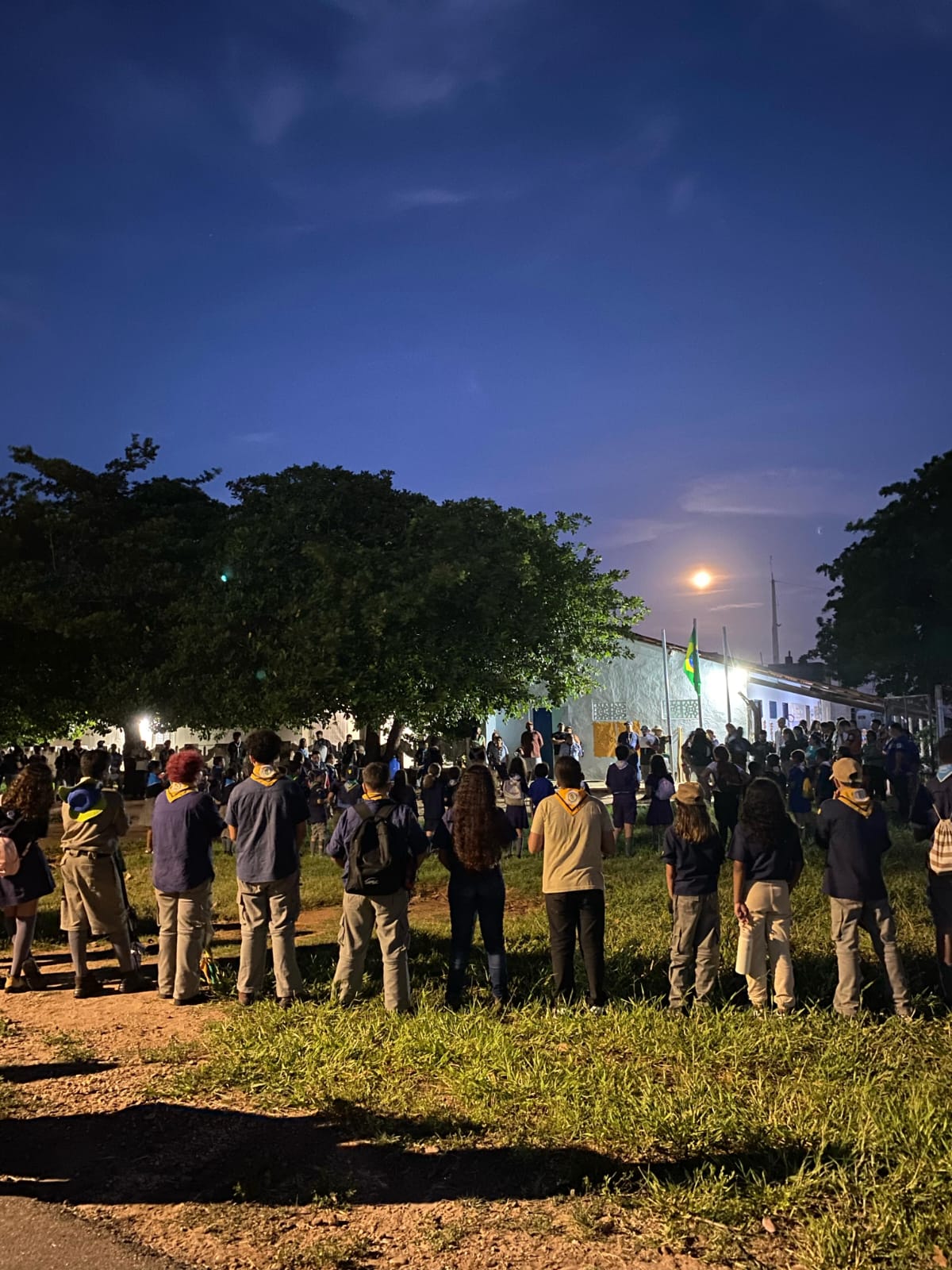 Cerca de 230 participantes formaram uma grande ferradura, em um verdadeiro símbolo de união e do espírito escoteiro que nos move.